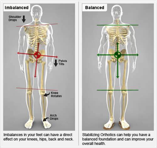 隨著年齡的增長,腳、腳踝和下肢會逐漸出現變形和不對稱。許多人的腿長不等,而且大多數人站立或走路時不對稱。由於重複性勞損、創傷或不良的姿勢習慣,可能會出現不對稱:一條腿可能比另一條腿長,一條膝蓋旋轉更多,一隻腳弓更塌陷。