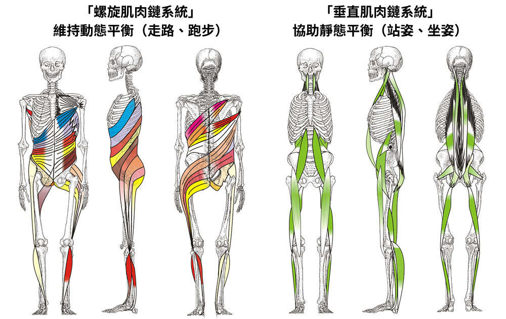 「垂直肌肉鏈系統」── 協助靜態平衡(站姿、坐姿)